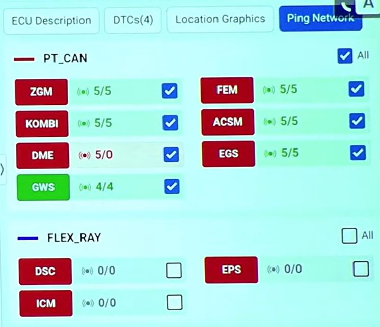 Depois da parte física e elétrica, vem o teste mais inteligente. Funções especiais do scanner, como a “PINK NETWORK”, permitem: